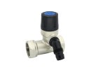 Pračkový rohový ventil se zpětnou klapkou a krytkou. Obrázky mohou mít pouze ilustrační charakter.